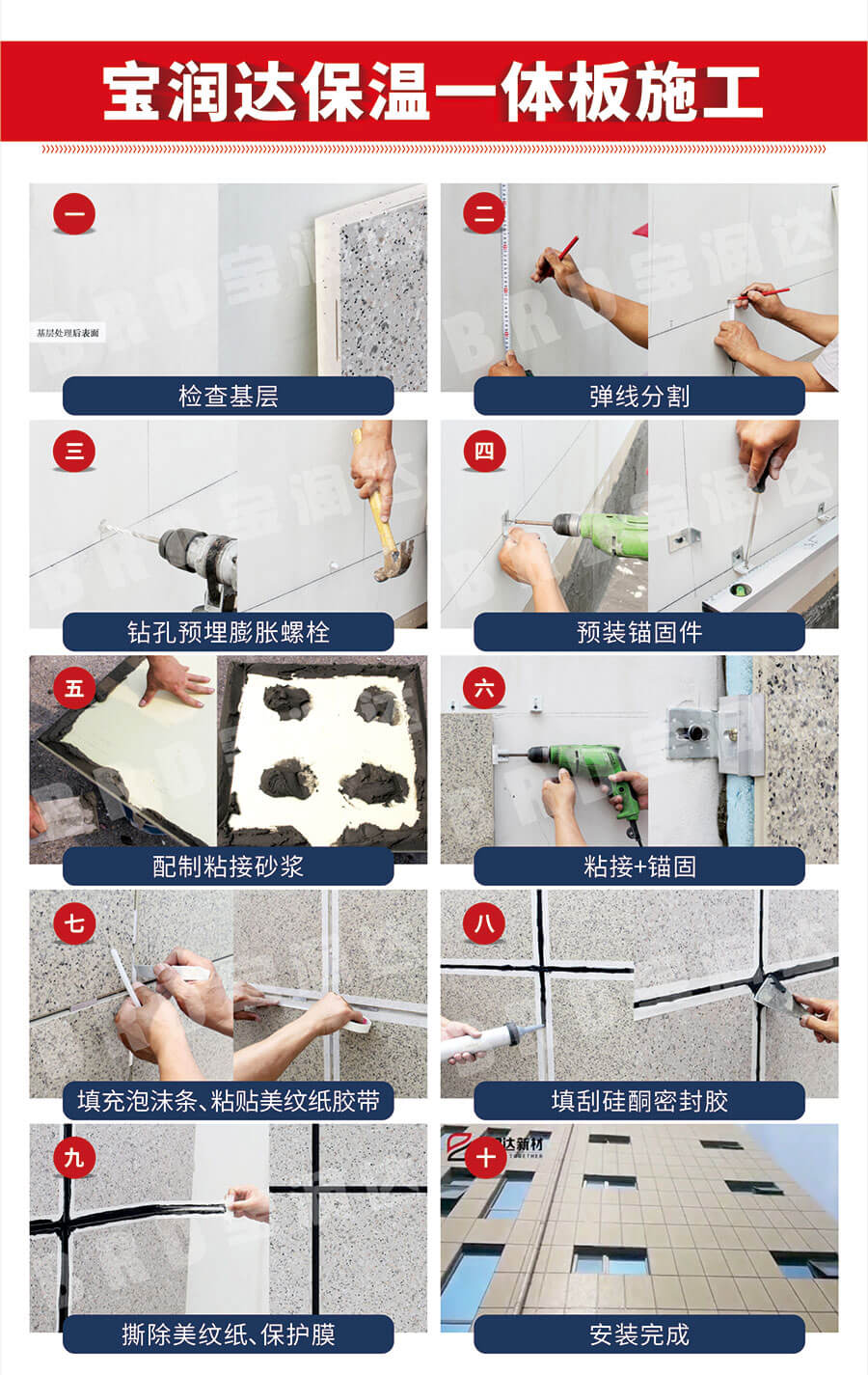 寶潤達擁有6條先進自動化一體板生產線,可生產飾面效果真石漆水包水,水包砂,氟碳漆,陶瓷薄板,鋁板,薄石材,保溫芯材采用A級防火巖棉板,熱固改性聚苯板,擠塑板,泡沫板,石墨聚苯板},實體源頭廠家供應,滿足各種定制要求,日產量15000平,極速發貨,免費寄送樣品。