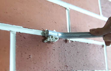 • 5.等勾縫劑半干后,用彎曲的鋼筋頭拉出凹縫,鋼筋頭需比縫寬