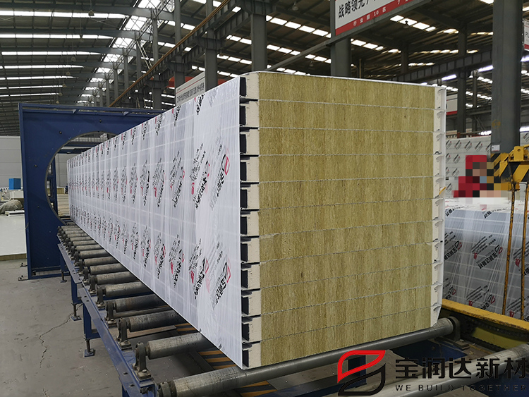 寶潤達聚氨酯封邊巖棉夾芯板常用厚度為50mm-100mm,板型有小波紋、純平或單鏡面,隱形暗釘,可橫裝板也可豎裝板,常規(guī)彩鋼厚度0.4mm-0.8mm,保溫芯材有A級防火巖棉、玻璃絲綿,有效寬度1米,長度可按要求定做。